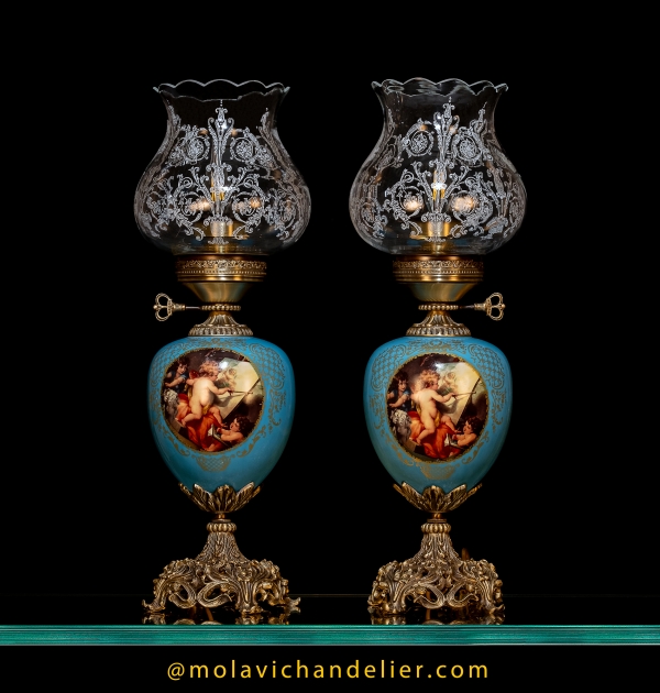 چراغ کاپ آبی پایه مومی با لنتری سفید